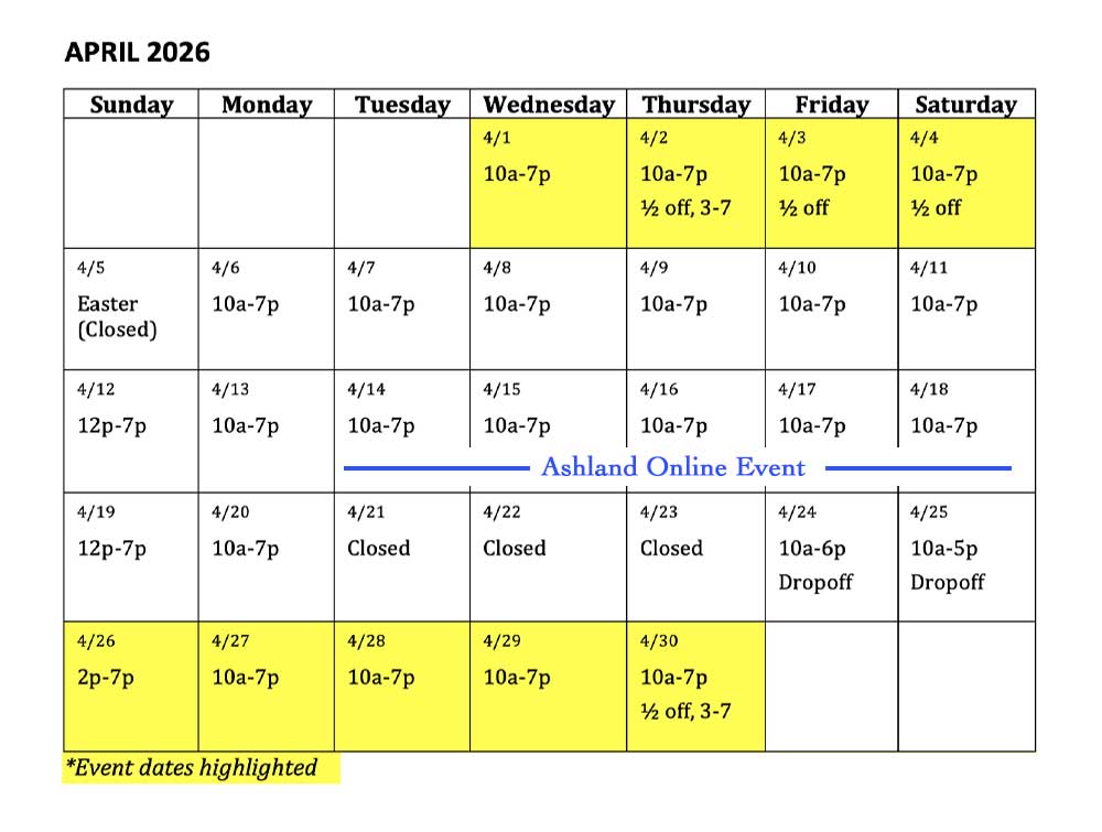 Our South Point location is open to the public during the hours below. Click on the calendar for a larger viewpoint.